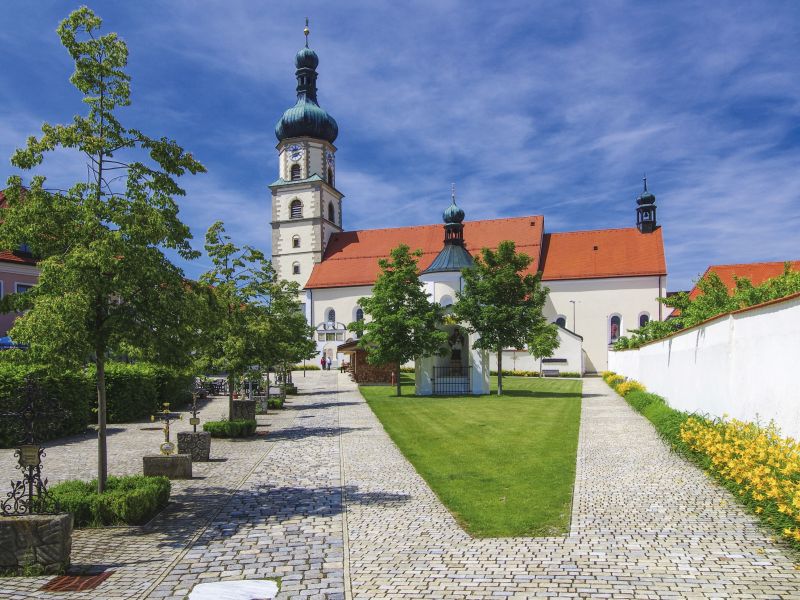 Die barocke Wallfahrtskirche "Mariä Geburt" liegt in einem breiten Tal, das sich im Osten des Hohenbogen hinzieht und im Norden zur Further Senke weitet. Kilometerweit ist der mächtige, siebenstöckige Turm mit seiner ausladenden, für die Gegend typischen, Zwiebel zu sehen.
