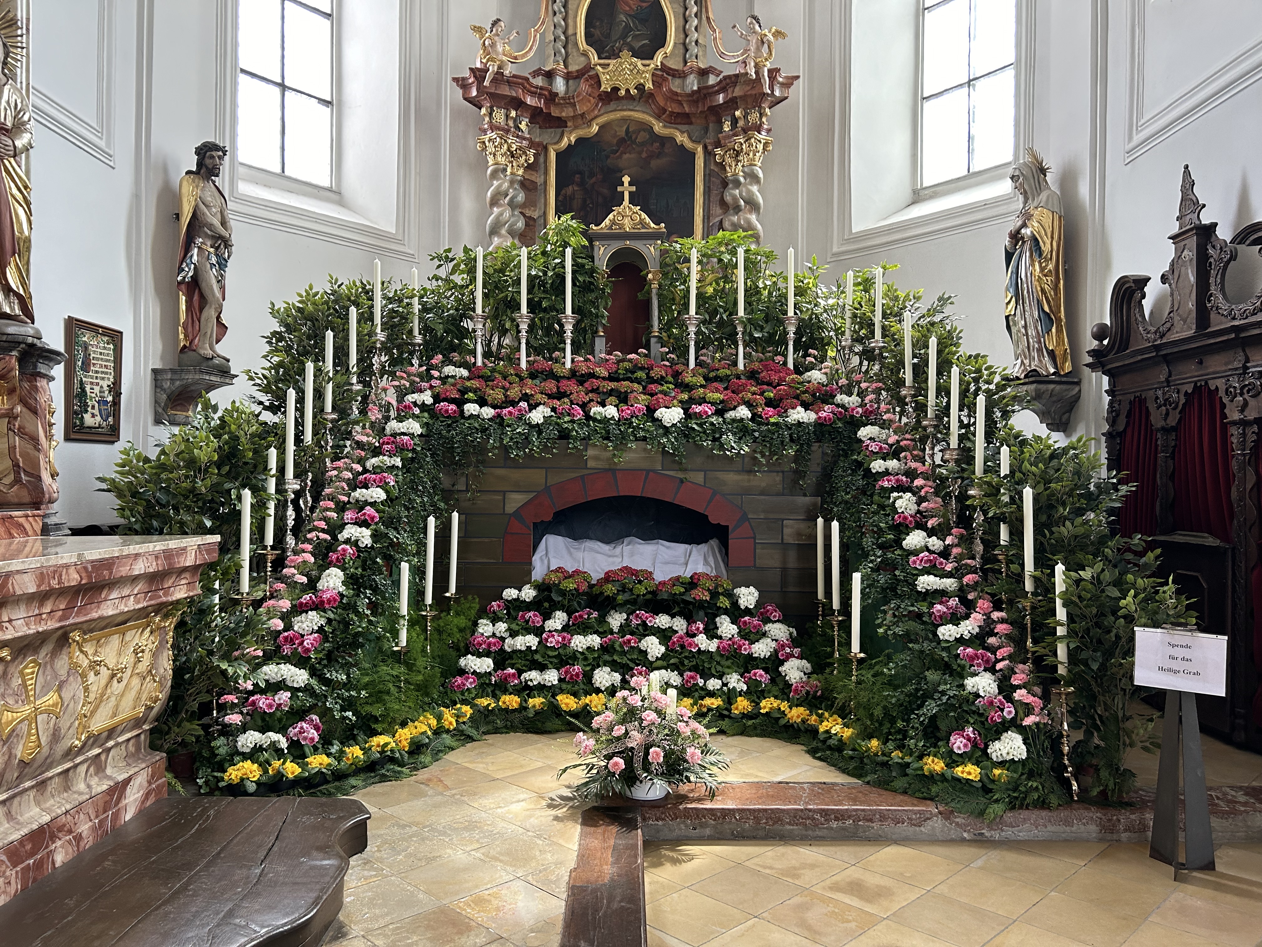 Als „Heiliges Grab“ wird einerseits das Grab Jesu in Jerusalem und andererseits die Nachbildungen dieses Heiligen Grabes zur Osterzeit bezeichnet. Beim rechten Seitenaltar in der Wallfahrtskirche kann man jedes Jahr zu Ostern ein besonders prachtvol…